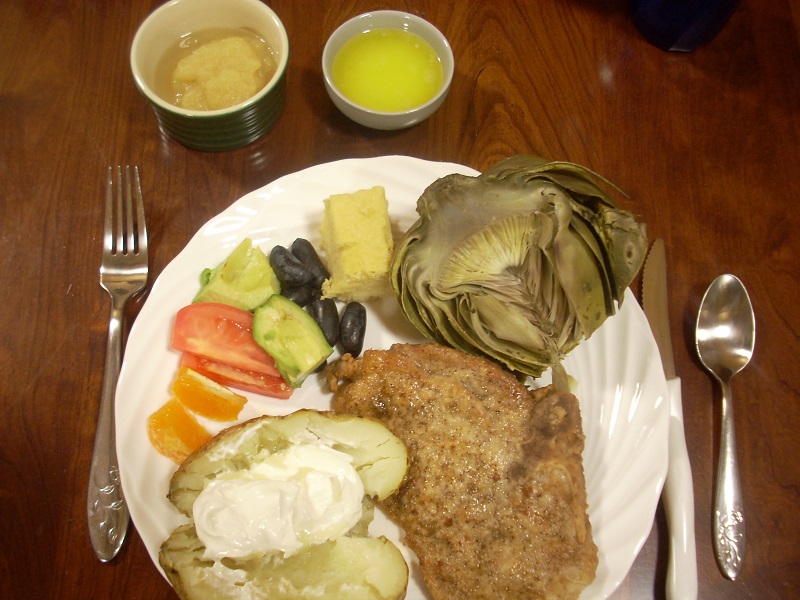 ![]() A no-meat meal—scalloped potatoes! Everyone loves these. A side salad and kiwi slices completes the meal. |
