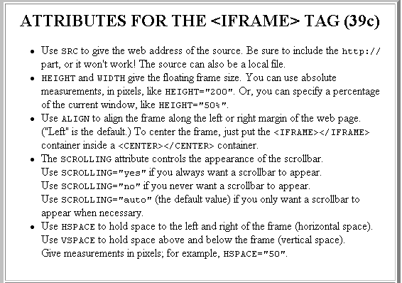 ATTRIBUTES FOR THE <IFRAME> TAG (39c)